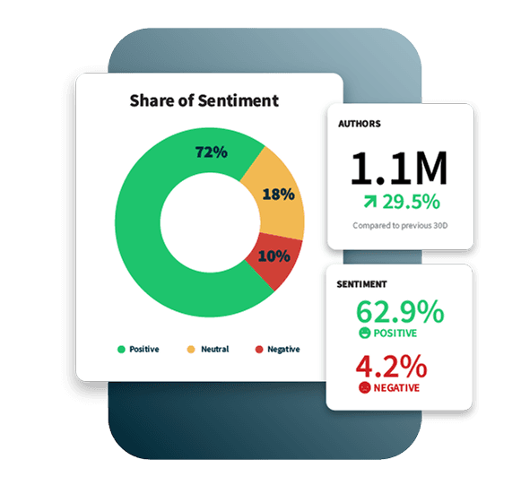 Behalten Sie die Online-Unterhaltungen im Auge, verfolgen Sie die Stimmung bzgl. Ihrer Marke und entdecken Sie, was gerade im Trend liegt. Außerdem können Sie die besten Influencer finden und neue Märkte identifizieren.