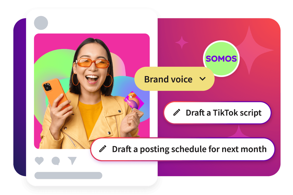 Lernen Sie das Social-First-KI-Tool kennen, das auf der Grundlage der aktuellen Social-Media-Trends Ihrer Marke Beiträge verfasst, die wirklich das Scrollen stoppen.