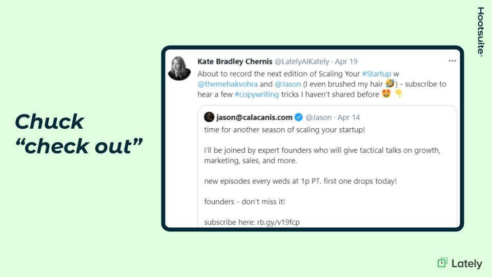 Copywriting isn’t a soft skill, it’s a core business tool. So put on your writing hat, grab some caffeine, and let’s get to work. Join our exclusive webinar with Lately.ai CEO Kate Bradley Chernis to learn how to turn flavorless statements into spicy calls-to-action.