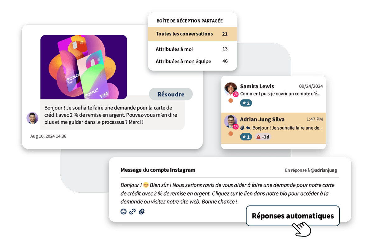Réduisez de moitié le temps de réponse (et rendez vos clients heureux) avec une boîte de réception simple contenant tous vos réseaux sociaux. Oui, juste une. Consultez les messages privés, les commentaires et les réponses de la page Facebook, et répondez-y depuis un seul et même endroit.