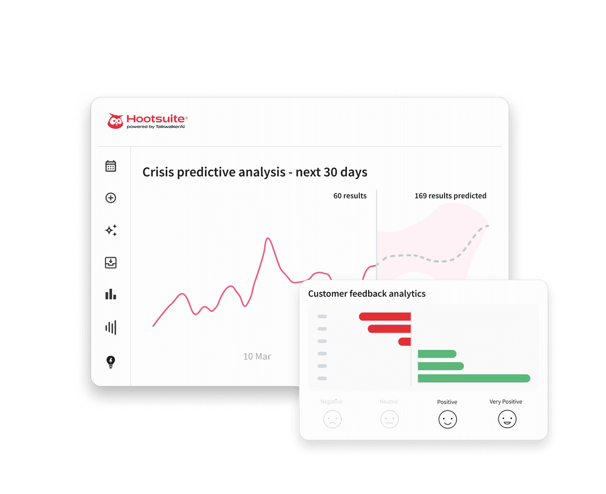 Protect your brand’s reputation effortlessly with real-time mention alerts, review management, and proactive sentiment tracking. It’s all in Hootsuite powered by Talkwalker AI.