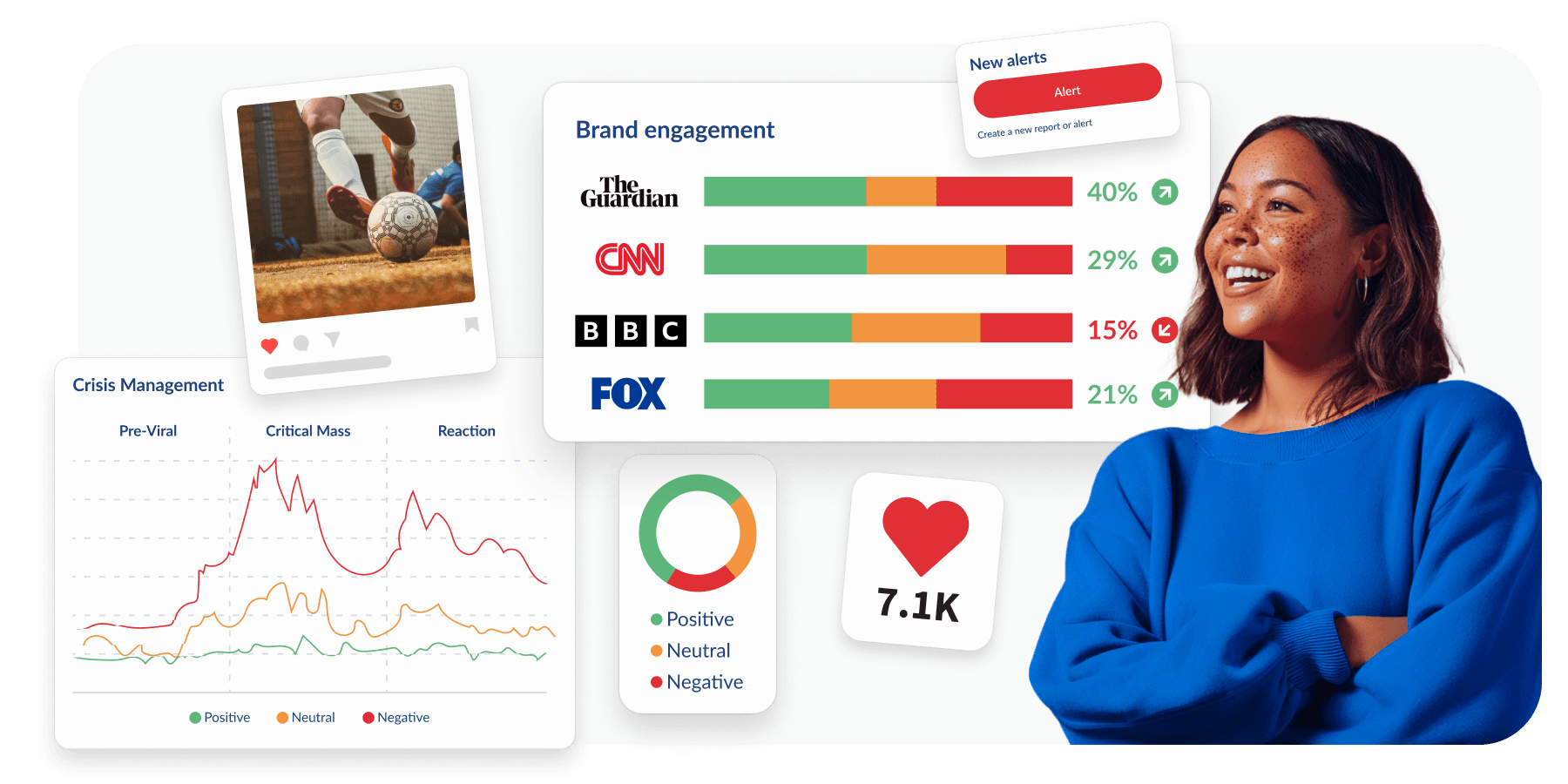Aproveite as análises de sentimento em tempo real, a pontuação de impacto na mídia e o benchmarking competitivo para saber exatamente como sua marca está sendo percebida. Com uma visão unificada de todos os canais, você sempre saberá onde as conversas estão ocorrendo e onde sua reputação está em risco.