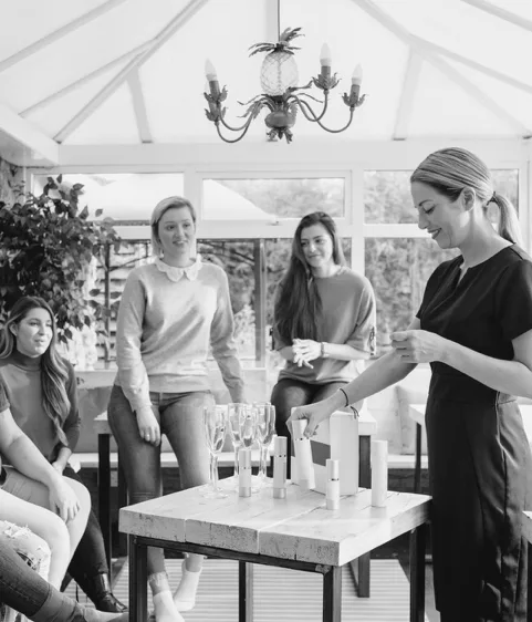 Product shot of Amway makeup products, shot in black and white