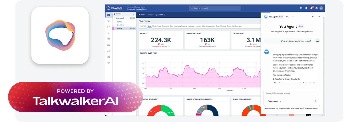 Talkwalker is adding Page Aware mode to Yeti Agent to provide a more intuitive and integrated AI experience